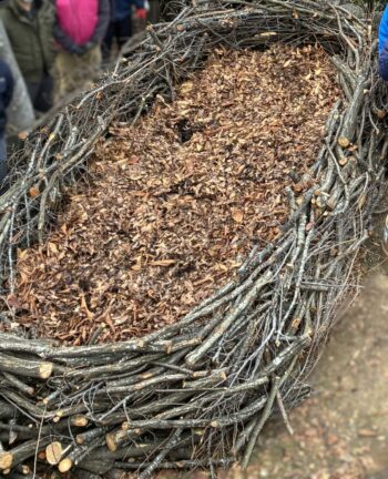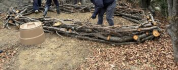 剪定された枝や落ち葉を組み合わせて作る堆肥置き場の事。